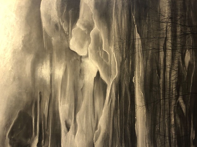 Fusain, craie conté et pastel sur bois